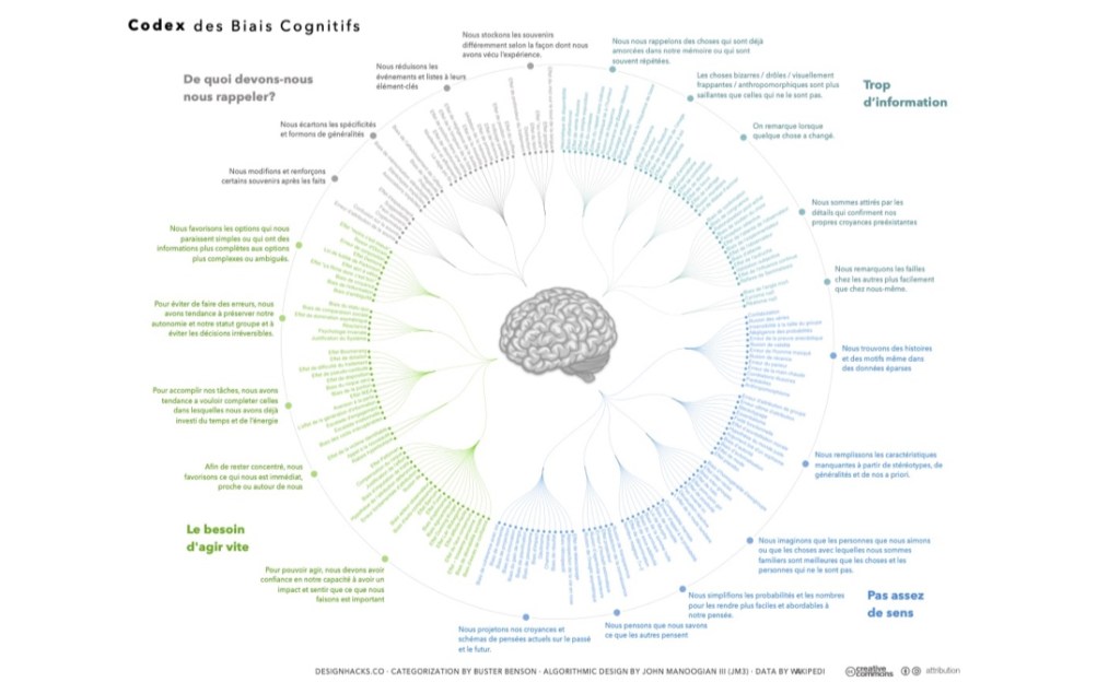 Les biais cognitifs sont des raccourcis de pensée spontanés et conscients. Ils détermineront notre interprétation des choses et peuvent donc être orientés lorsqu’on les connaît.