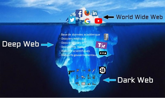 Cet article s’appuie sur le reportage de France 4, DarkNet l’autre réseau. Le dark web ou le deep web correspondent en fait à la partie clandestine et non contrôlée d’internet. Cela représente en fait 99% d’internet : c’est la partie submergée de l’iceberg.