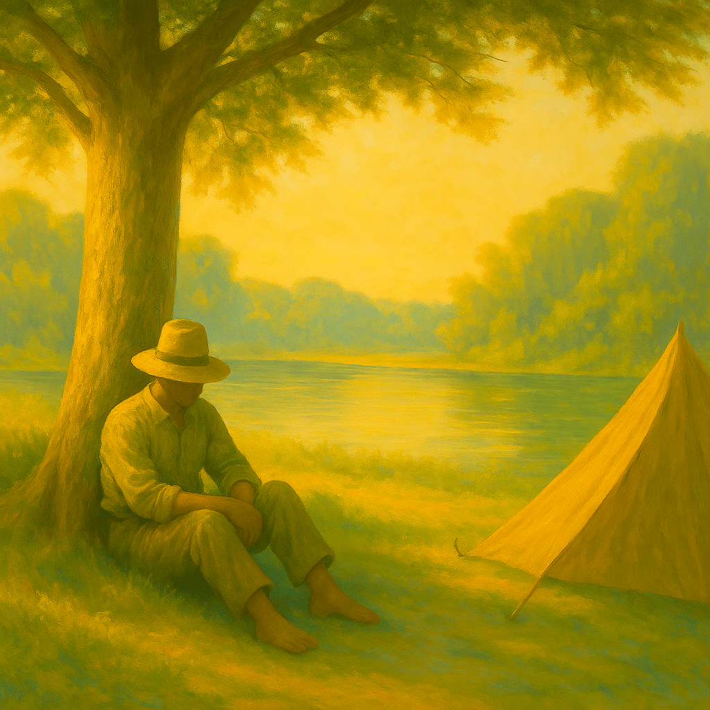 Et je m’assois dans l’herbe, au soleil, au bord de ma tente
